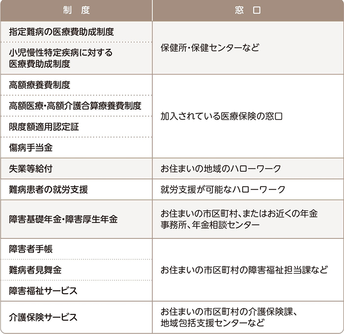 症状の程度やお住まいの自治体によっては次の制度を利用できることがあります